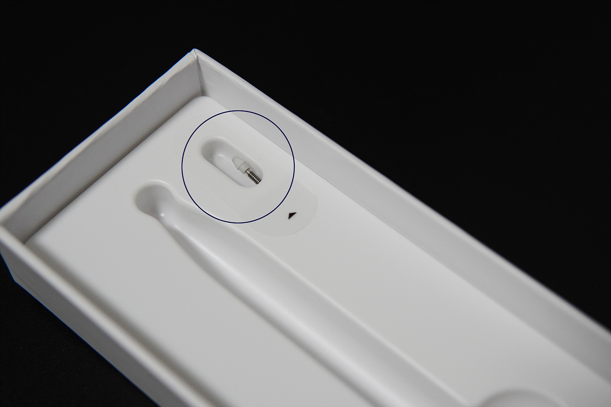 펜촉은 여분으로 한 개가 더 포함되어 있으며 빠지지 않게 위쪽에 테이프가 부착되어 있습니다.