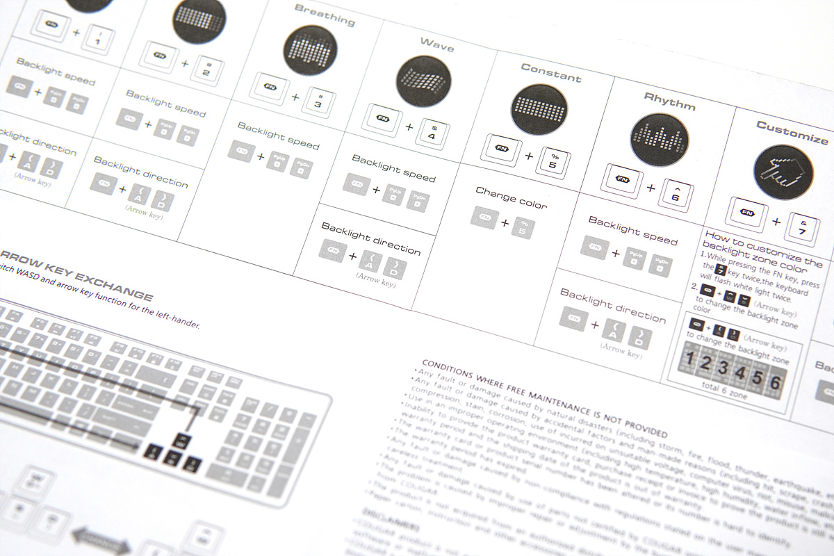 설명서에는 멀티미디어 키의 사용과 RGB LED를 바꾸는 부분에 대해 설명이 되어 있지만 아쉽게도 한글이 빠져있더군요. 간단한 영어로 되어있고 그림으로도 안내를 하고 있어서 사용하는데 큰 지장은 없지만 그래도 한글 매뉴얼이 없는 부분은 분명 단점이라고 생각합니다.