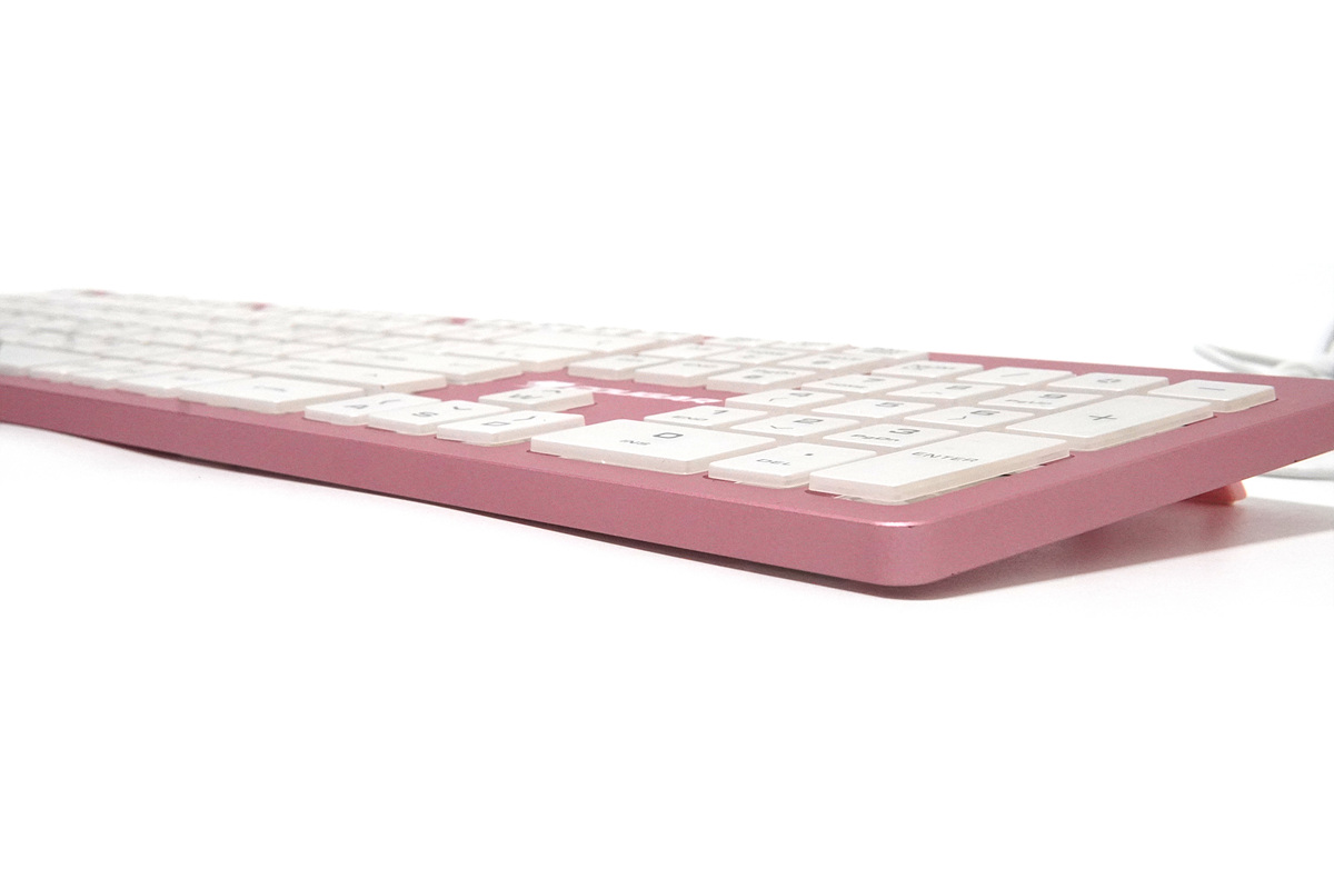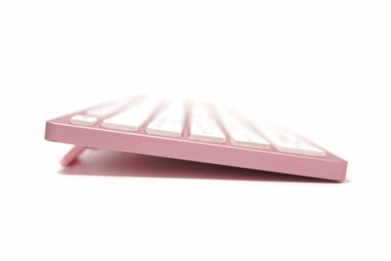펜타그래프 키보드답게 상당히 얇은 두께(높이)를 확인할 수 있습니다. 핑크 색도 그렇지만 이런 키보드의 두께 역시 호불호가 갈리게 됩니다. (하우징에 따라 타건감이 크게 달라집니다.)