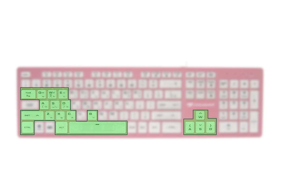 게이밍 키보드인데 모든 키가 무한 입력을 지원하지 않는 부분은 조금 아쉽지만 그래도 게임에서 자주 사용되는 19개의 키(Key)들은 동시 입력을 지원하고 있습니다.
