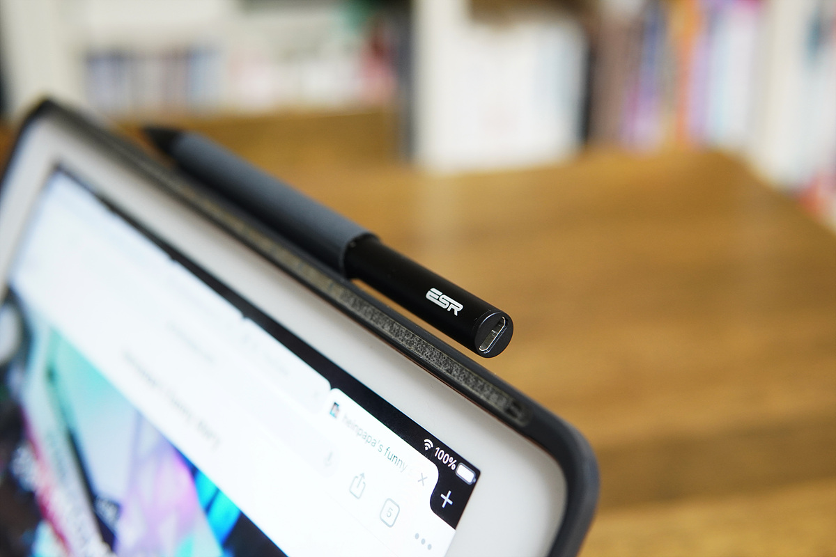 특히나 기존에 애플 펜슬이 있는 분들이 밖에서 사용하거나 서브로 사용할 때는 딱 좋은 성능과 가격이라고 생각합니다. 테스트를 해보니 가벼운 무게와 실제 책이나 노트에 쓰는 필기류(볼펜, 연필)와의 이질감이 없는 부분이 가장 마음에 들었습니다. 반대로 애플 펜슬처럼 각이 없는 원형 타입의 디자인은 아쉬움이 남았습니다. 책상 위에 잠깐 둘 때 굴러다니기도 하고 저처럼 고양이들이 있는 집에서는 더더욱 조심해야 되기 때문입니다.