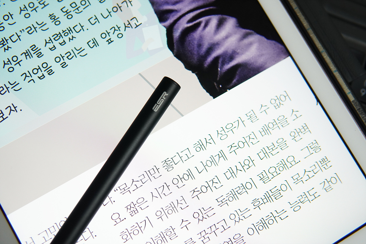 ESP 터치 펜슬은 실제로 종이에 사용하는 볼펜이나 필기구의 직경(굵기)과 차이가 거의 없어서 디지털 펜슬을 처음 사용하는 분들도 이질감 없이 사용할 수 있습니다. (모나미 볼펜보다 조금 더 굵은 편이었습니다)