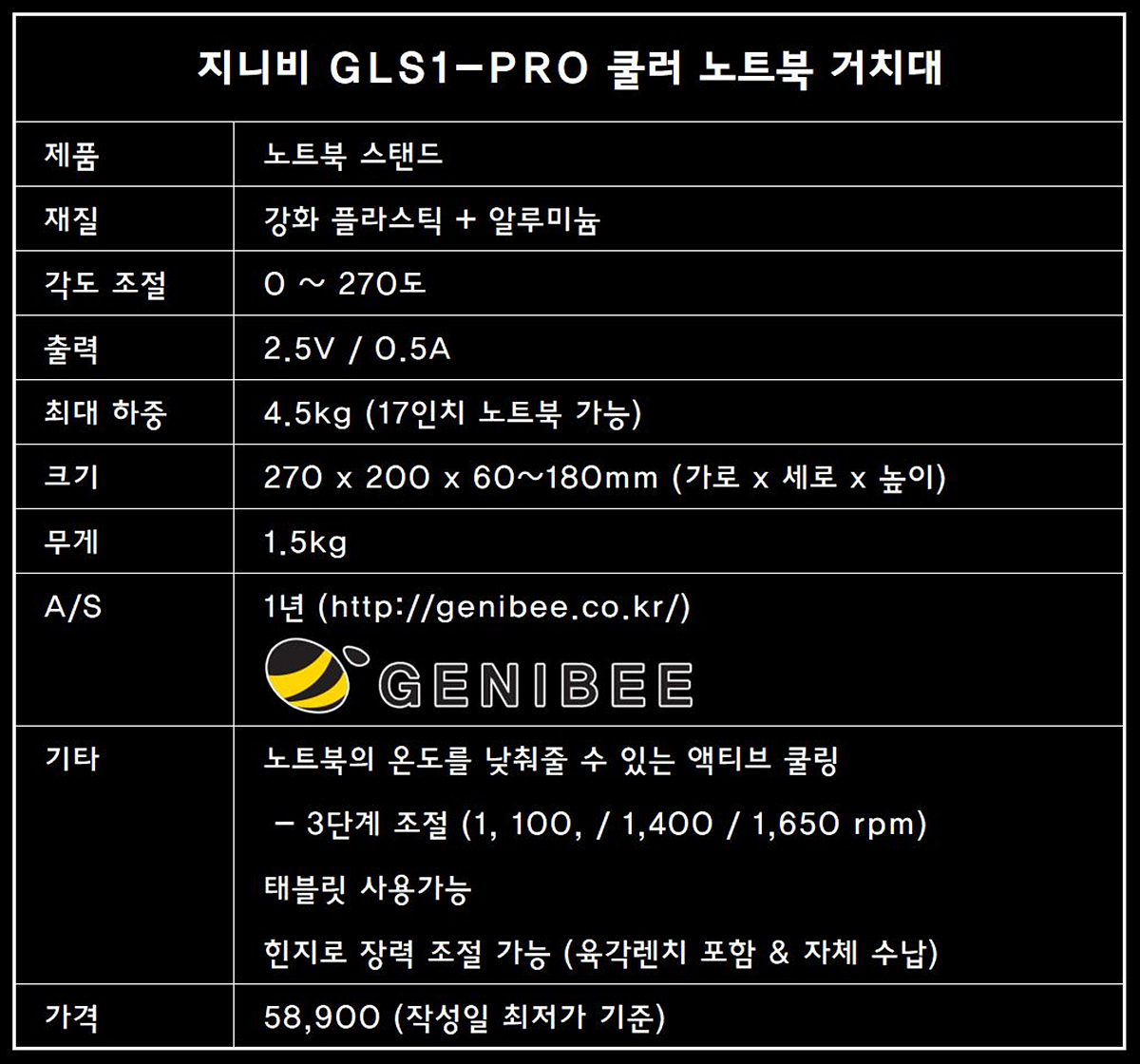 지니비 GLS1-PRO 쿨러 노트북 거치대 : 지니비몰