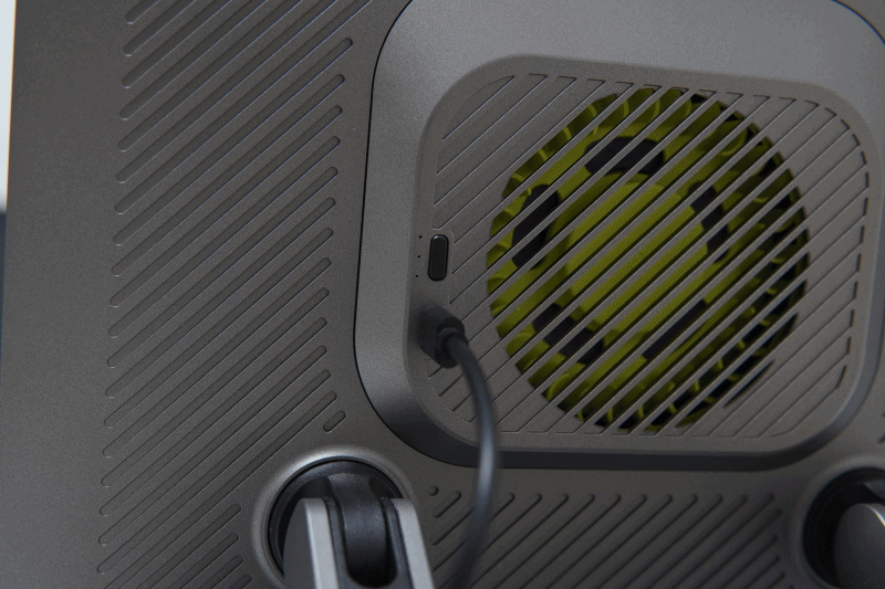 바닥 부분에는 USB Type-C 커넥터와 rpm을 조절할 수 있는 스위치가 있습니다. rpm 스위치는 한번 누를 때마다 off - 1단 - 2단 - 3단으로 동작하며 아랫부분의 LED를 통해서 현재 상태를 확인할 수 있습니다. 커넥터가 마이크로 5 핀이었다면 케이블을 연결할 때 방향 때문에 항상 확인을 해야 돼서 불편하겠지만 Type-C 커넥터는 방향에 관계없이 편리하게 장착할 수 있습니다. 스위치의 위치가 불편하지는 않았는데 아래쪽이나 측면도 좋을 거 같습니다.