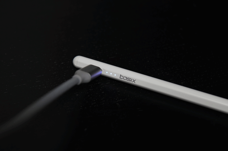 애플 펜슬처럼 깔끔하게 화이트로 되어있습니다. 충전이나 LED가 있는 면(面)은 평평하게 되어있어서 책상 위에 두어도 굴러 떨어질 염려는 적은 편입니다. 이런 부분은 애플 펜슬보다 더 낫습니다.