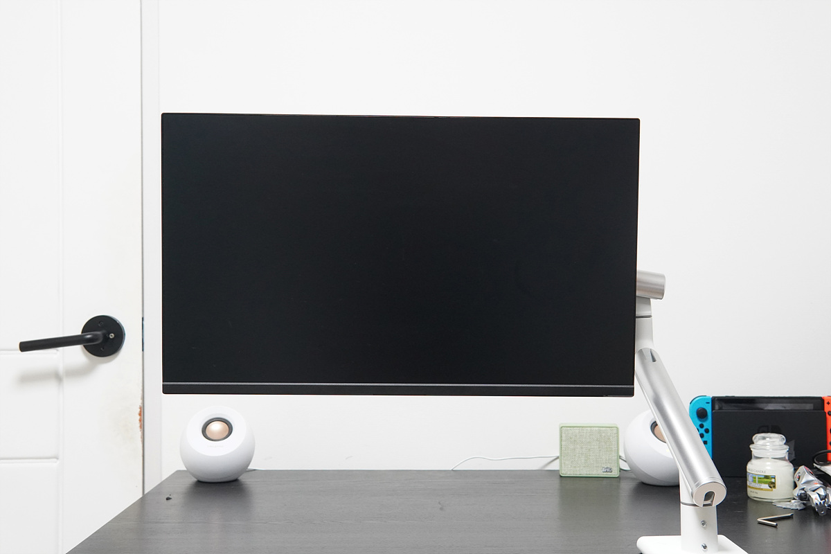 모니터를 올려두면 키보드와 마우스를 놓을 공간이 부족했지만 모니터암이 있다면 이런 제약이 사라지게 됩니다. 사실 이 사진 한 장으로도 모니터암의 필요성이 바로 설명이 됩니다.