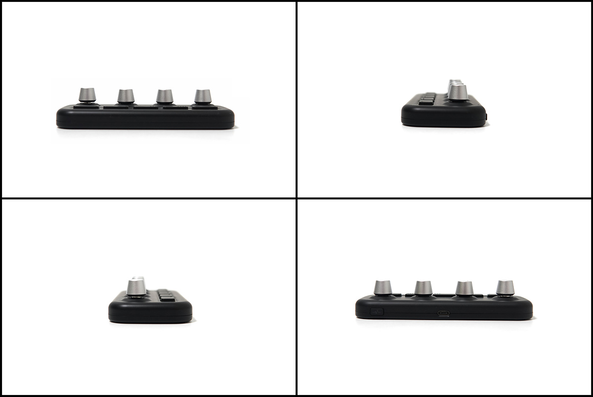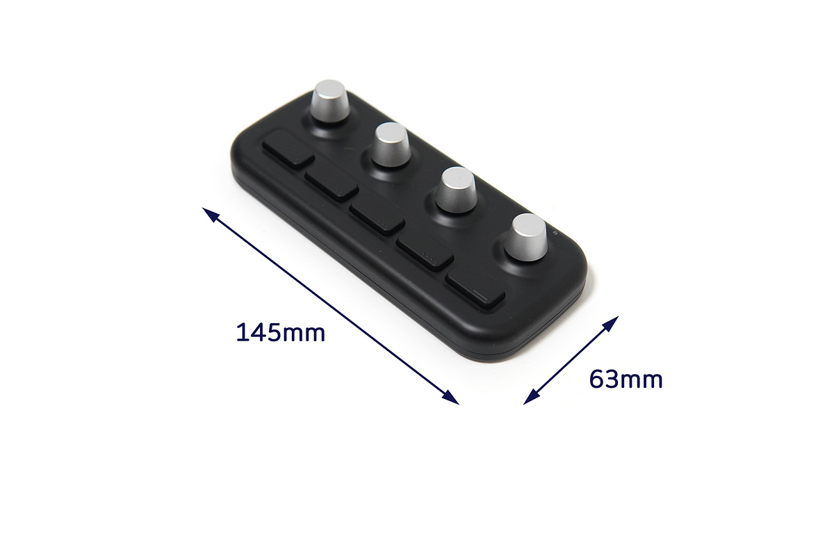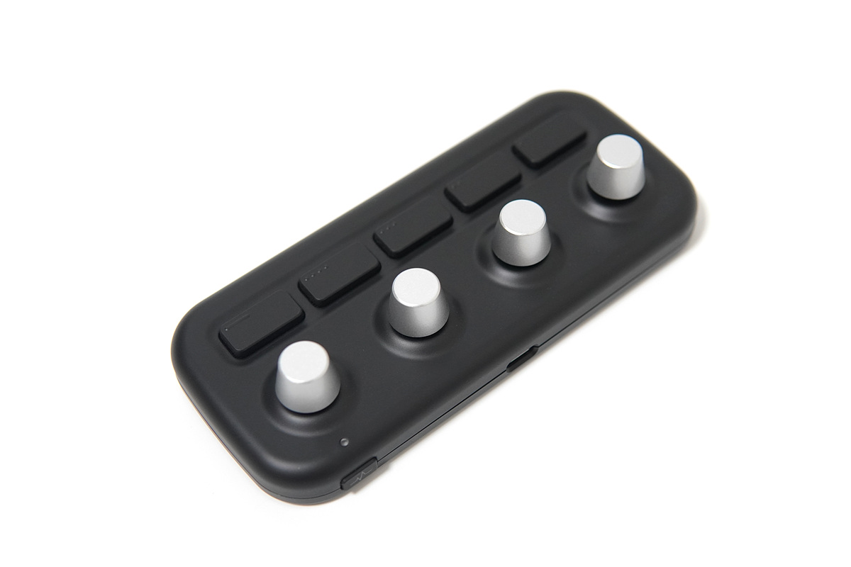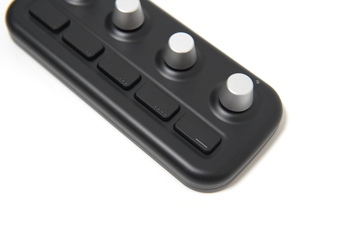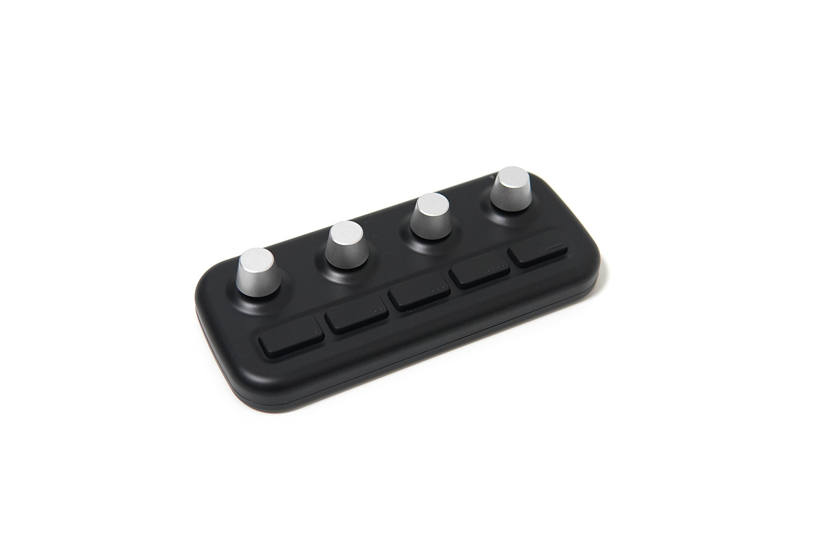4개의 다이얼(노브)와 5개(4+1)의 버튼이 있으며 각각 단독적으로 사용할 수 있습니다. 1번부터 4번까지의 버튼에는 점자처럼 돌기로 표시가 되어있습니다. 맨 오른쪽의 버튼은 기능을 실행하는 버튼이 아닌 모드를 바꿀 수 있는 버튼으로 4개의 모드를 지원하고 있습니다. 모드 한개당 8개(다이얼 4개, 버튼 4개)의 명령을 사용할 수 있으니 전체 32개의 명령을 실행할 수 있습니다. 사용하는 프로그램에 따라 각각 32개씩 설정을 할 수 있으니 단축키나 기능이 부족해서 불편할 일은 없을 거라 생각합니다. (엑셀 32개, 포토샵 32개, 라이트룸 32개 각각 사용할 수 있습니다.)