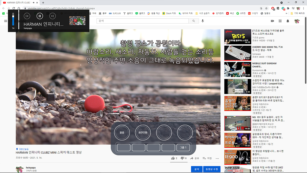 볼륨 조절을 하면 Windows의 메인 볼륨을 조절할 수 있습니다. 데스크톱에서 별도의 스피커를 사용하는 경우라면 잘 사용하지 않겠지만 노트북을 사용할 때는 편리하게 사용할 수 있습니다.