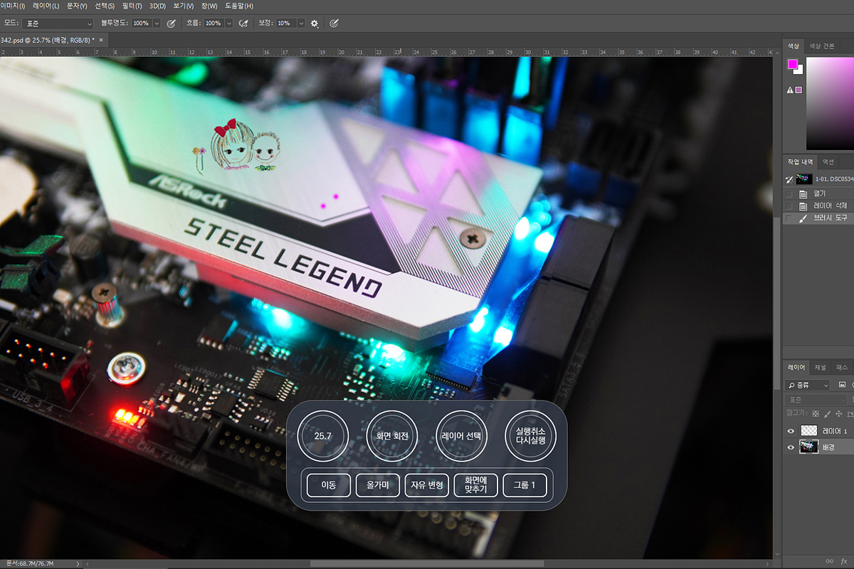 전 포토샵에서 확대/축소를 가장 많이 사용하는데 다이얼을 사용하면 정말 쉽게 빠르게 작업할 수 있었습니다. 기존에는 Alt + 마우스 휠을 돌려서 사용해야 하지만 Grid10의 다이얼을 통해서 편리하게 조절할 수 있으며 밝기나 대비 역시 쉽게 조절할 수 있습니다.