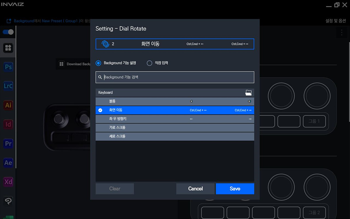 정식으로 등록되지 않는 프로그램은 Background에서 프리셋으로 추가할 수 있습니다. 마우스에서 프로파일 별로 세팅을 따로 할 수 있는 것과 비슷한 개념으로 프리셋 별로 프로그램을 따로 등록해서 사용할 수 있습니다.
