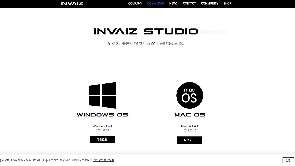컨트롤러를 사용하기 위한 소프트웨어는 인바이즈 홈페이지에서 다운로드할 수 있습니다. 소프트웨어는 Windows와 Mac 모두 지원하고 있어서 기기 한대로 편리하게 사용할 수 있습니다.