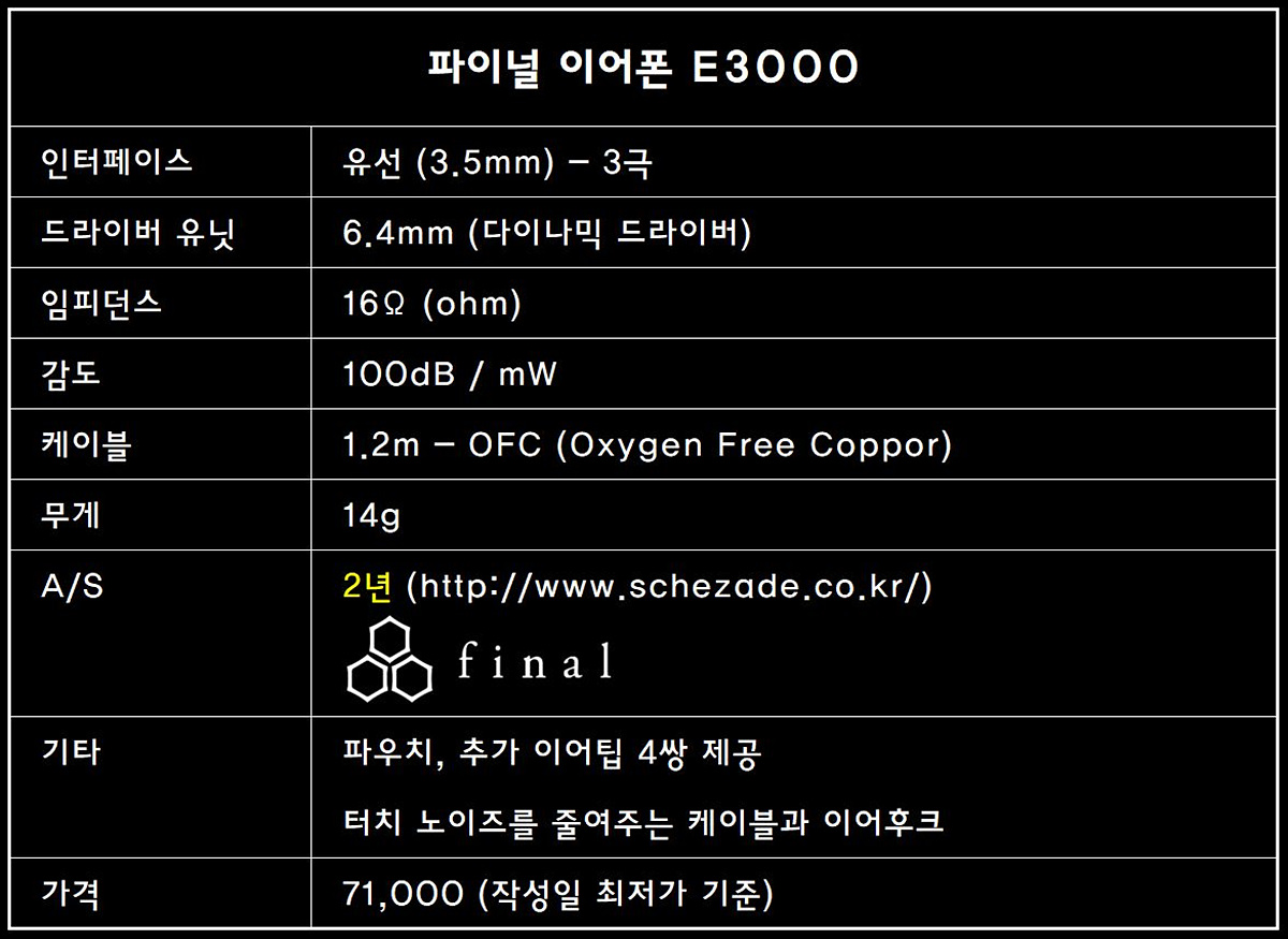 Final [파이널] 이어폰 (E3000)