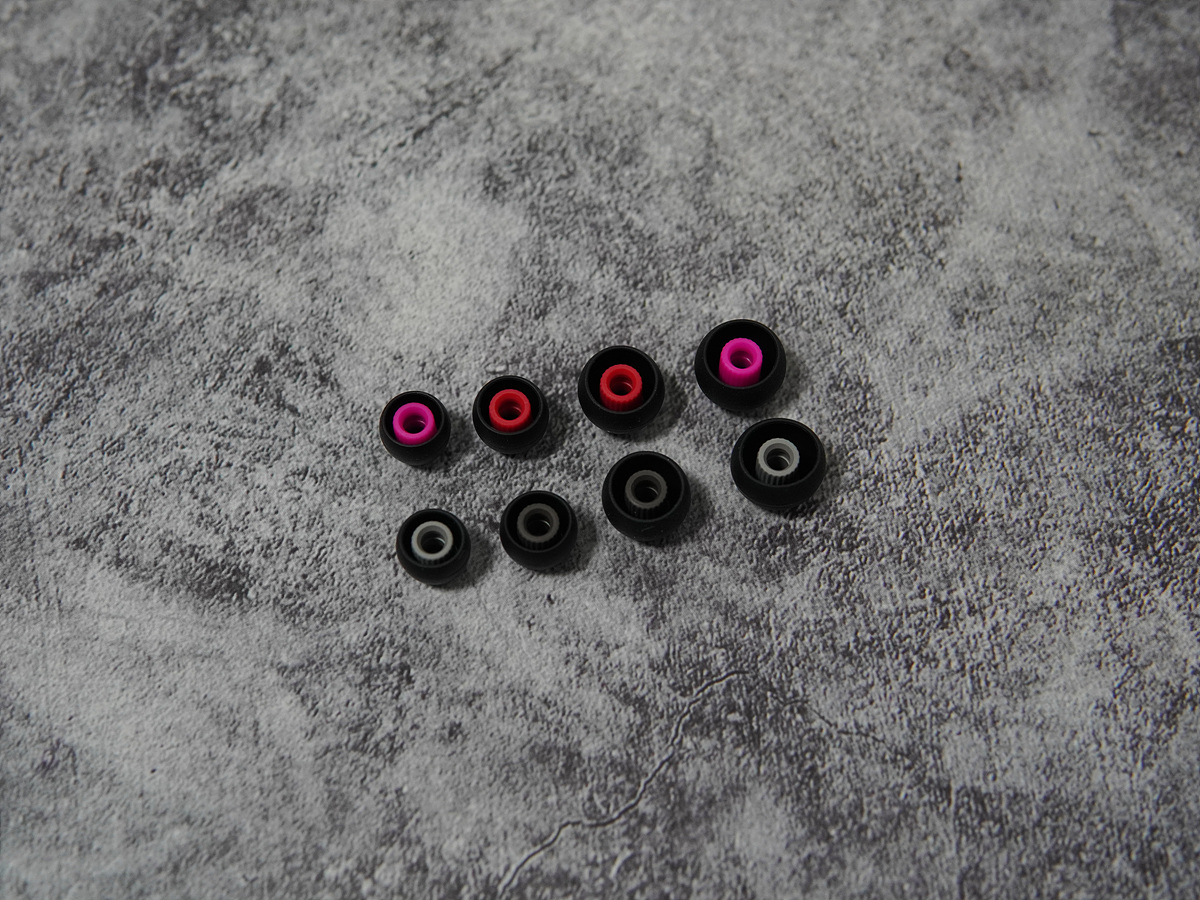4쌍의 추가 이어팁은 중심 부분이 모두 다른 색으로 되어있습니다. 일반적으로는 크기별로 같은 색으로 구분을 하고 있는데 E3000은 조금 다른 방법으로 구분을 하고 있습니다. 제일 큰 크기와 제일 작은 크기의 이어팁의 색이 같게 되어있어서 잘 모르는 분들은 당황하실 수도 있을 거 같네요. 한글 설명서가 있다면 이런 부분이 훨씬 더 좋았겠죠. 그래서인지 제품을 판매하는 DB에는 설명이 있더군요. 이어폰에서는 기본적으로 오른쪽에 조금 다른 표시를 하거나 빨간색으로 사용을 하고 있으니 빨간색 계열을 오른쪽으로 사용하시면 편리하게 사용할 수 있습니다.