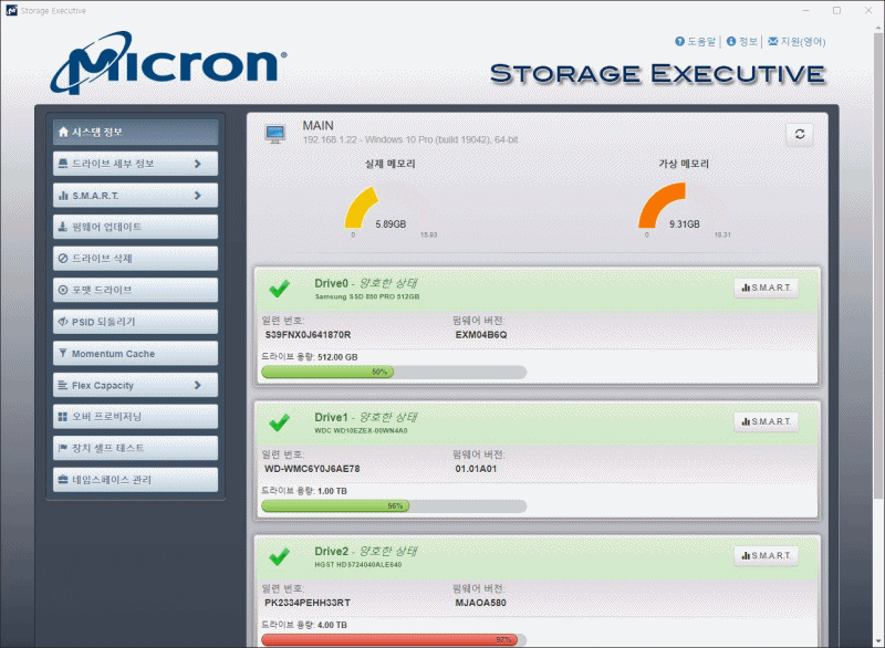 마이크론 SSD는 Storage Executive 전용 S/W를 지원합니다.