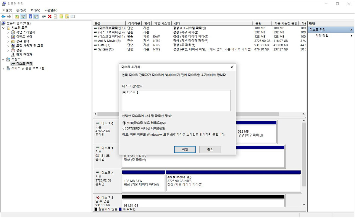 새로운 저장 장치는 볼륨 할당을 해주어야 정상적으로 사용할 수 있습니다.