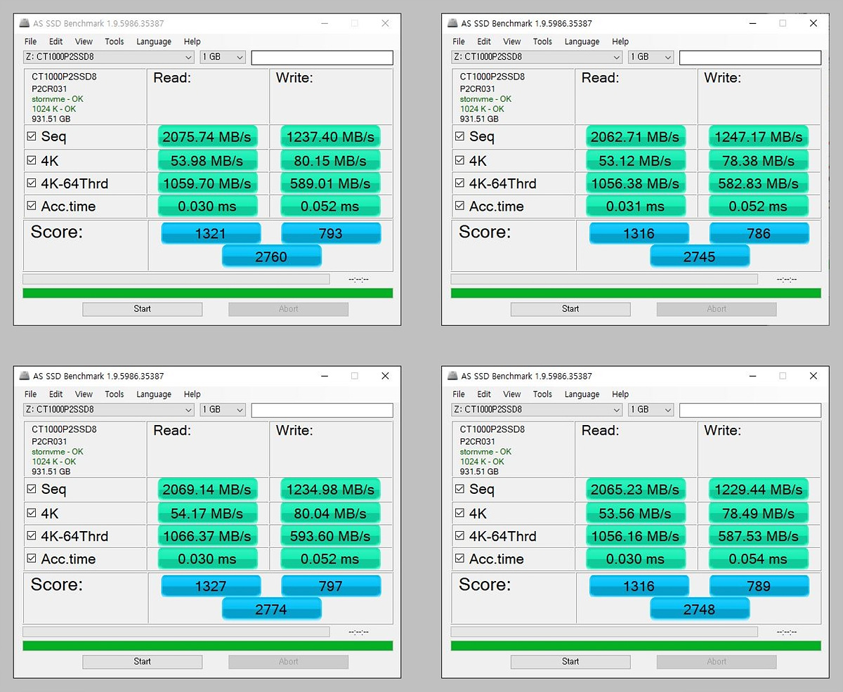 AS SSD를 4번 측정한 결괏값의 평균입니다. 4K의 속도뿐만 아니라 Access Time 결과도 좋았습니다.