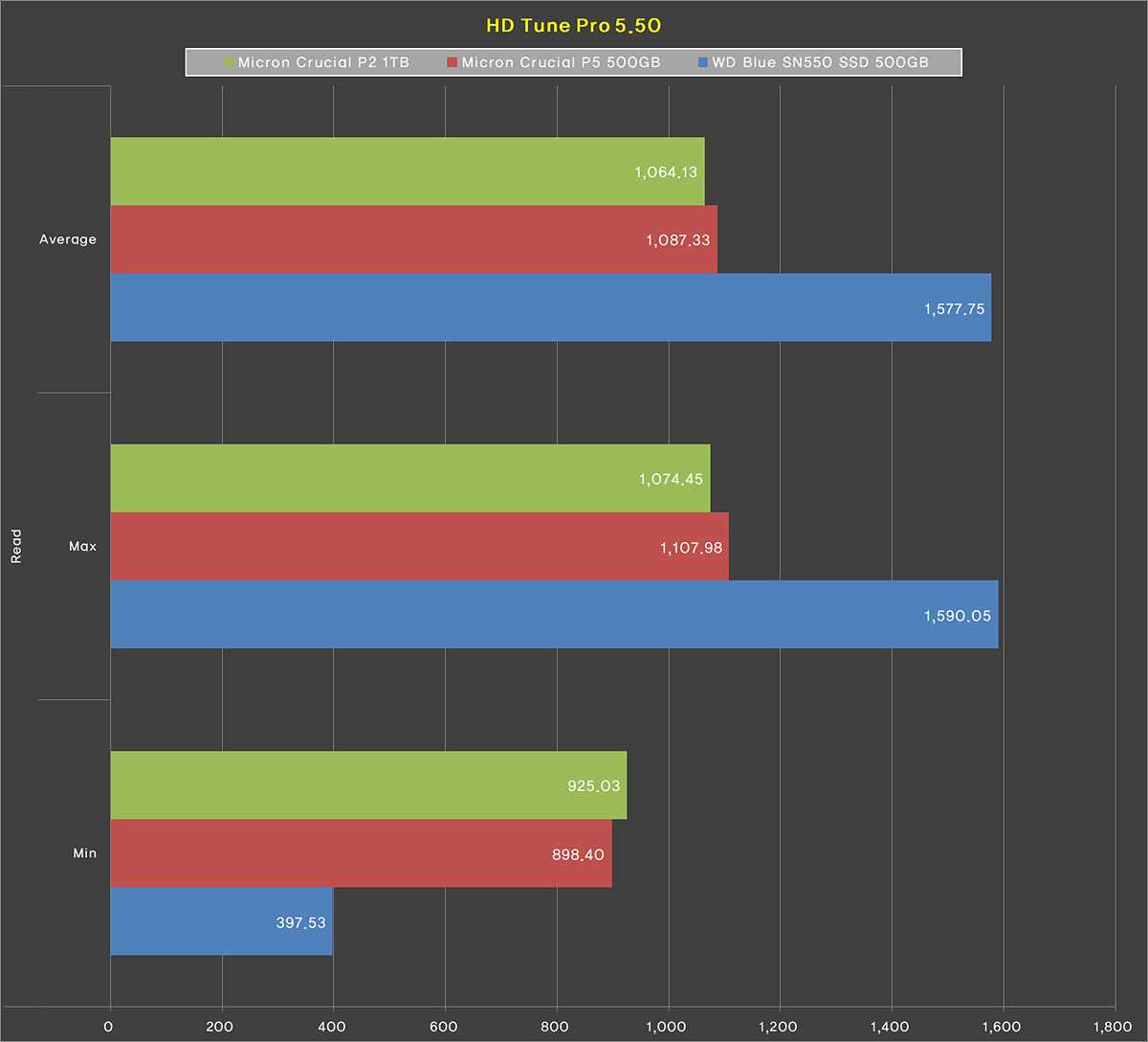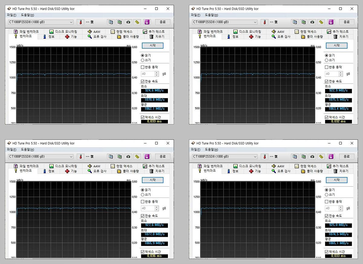 HD Tune Pro를 4번 측정한 결괏값의 평균입니다. 읽기 부분은 확실히 좋은 결과를 보여줍니다.