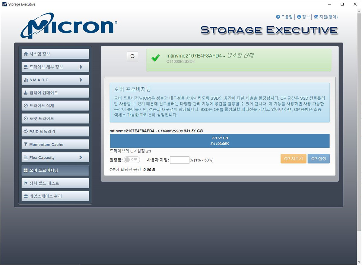 마이크론 SSD는 Storage Executive 전용 S/W를 지원합니다.