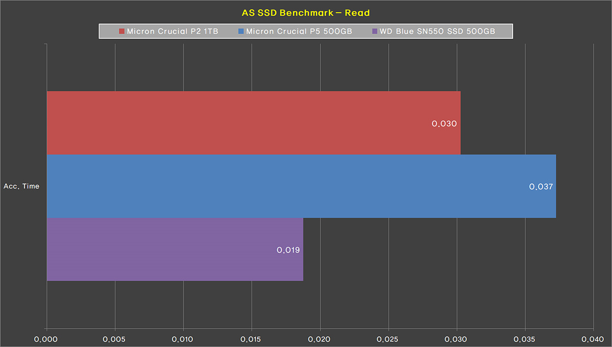 AS SSD를 4번 측정한 결괏값의 평균입니다. 4K의 속도뿐만 아니라 Access Time 결과도 좋았습니다.