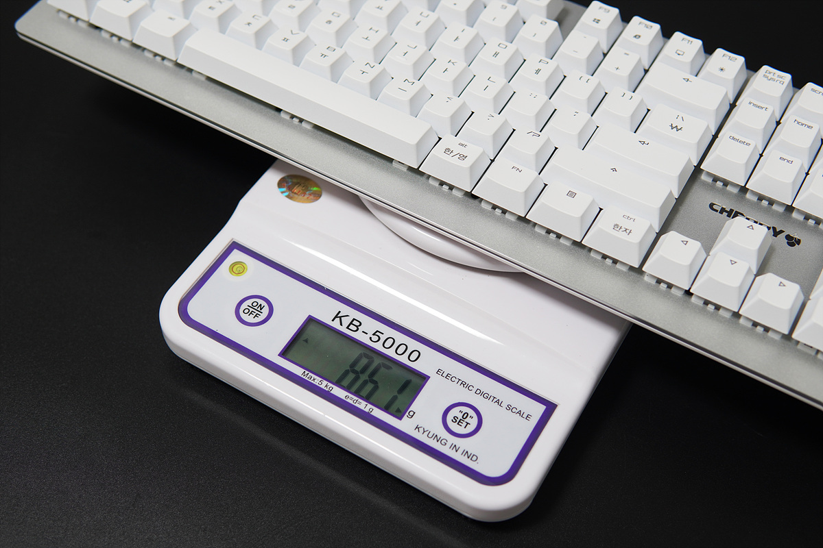 풀 배열의 알루미늄 상판을 사용했지만 무게는 861g으로 가벼운 편이었습니다. (케이블 제외)