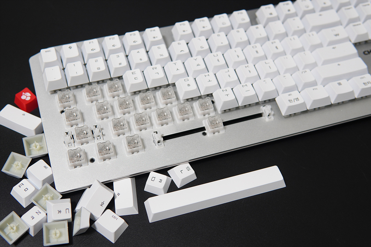 키 배열이 붙어있는 부분도 그렇고 이 체리 키(Key)는 정말 개선이 되었으면 좋겠습니다. 체리 키를 비활성화할 수도 있지만 일단 기본 배열과 달라지게 되면 사용뿐 아니라 오타도 늘어나게 됩니다. 체리에서는 독자적인 레이아웃을 만들고 싶어 하는 건지 왜 계속해서 이런 부분들을 고집하는지 잘 모르겠습니다.