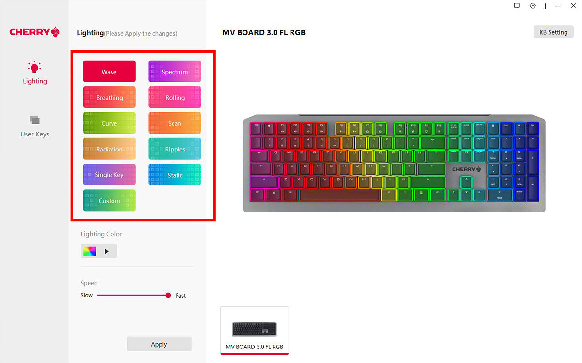 ◆ CHERRY MV3 0 키보드 RGB 영상