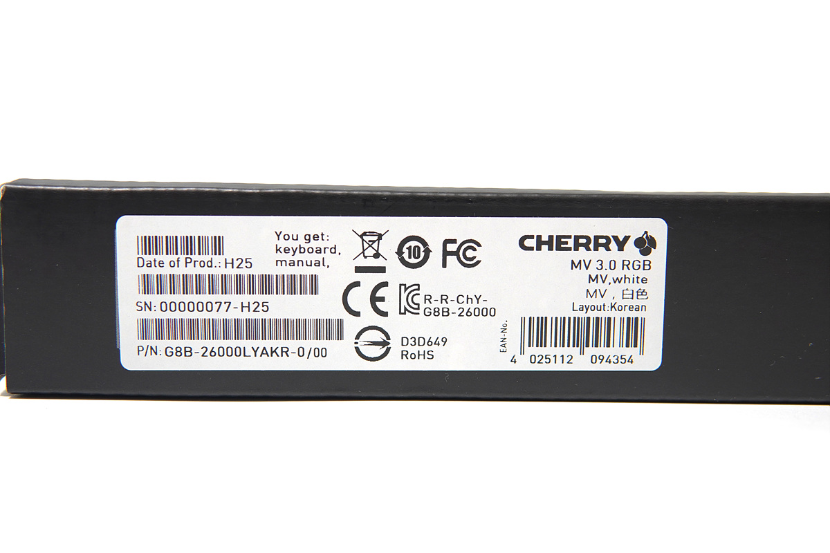 박스 디자인은 기존 체리 키보드와 같은 방식으로 되어있으며 측면에는 제품의 종류가 자세하게 표시되어 있습니다. MV 3.0 키보드는 현재 실버(화이트), 블랙 두 가지가 있습니다.