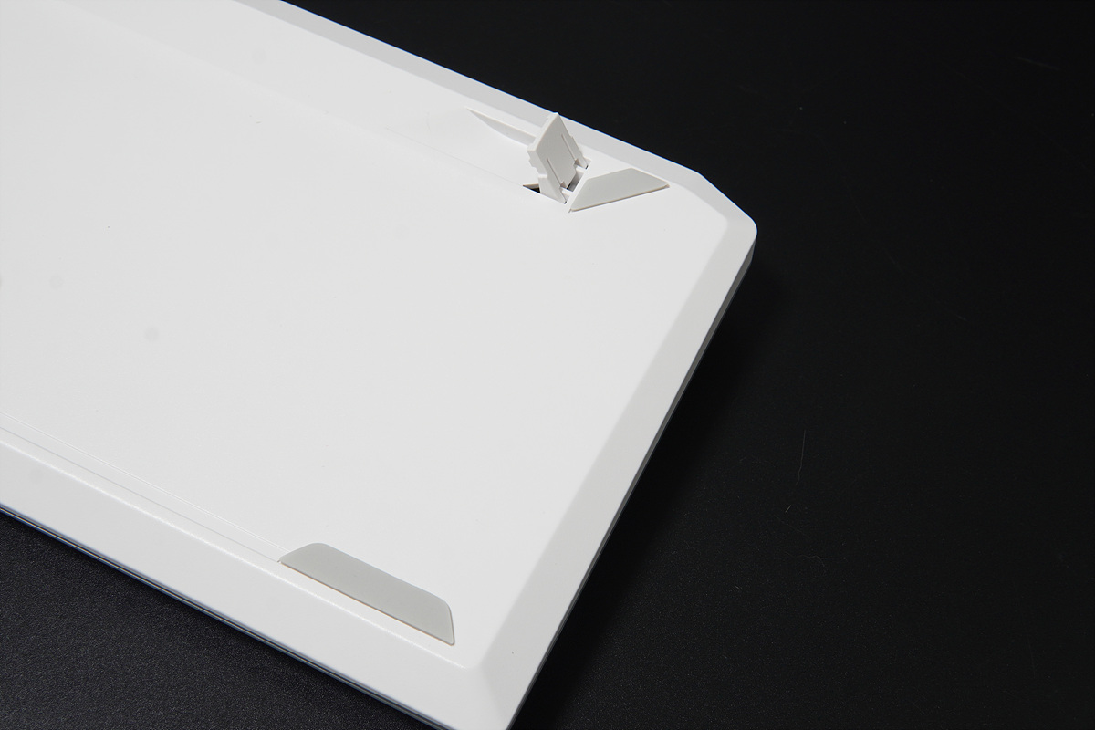 키보드의 미끄럼과 진동을 줄여주는 실리콘은 모서리 4곳에 부착되어 있지만 높이 조절용 다리에는 따로 적용이 되질 않았습니다. 키보드 다리를 세워서 사용하는 저 같은 사용자들에게는 아쉬운 부분입니다.