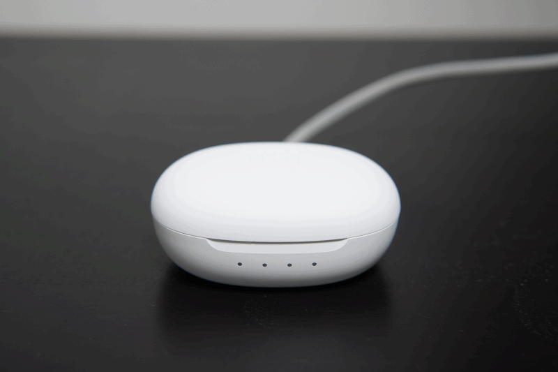 이어버드는 흰색으로 통일되어 있으며 충전단자는 2핀으로 되어있습니다.