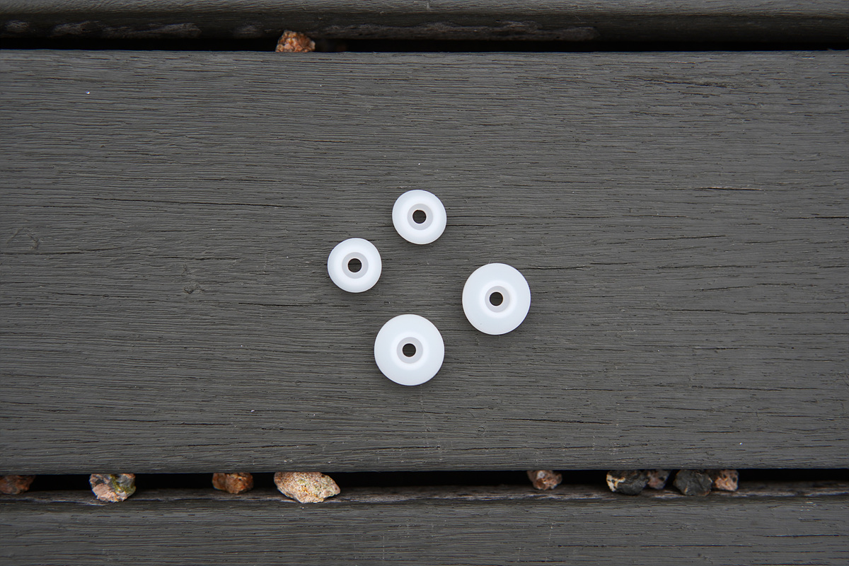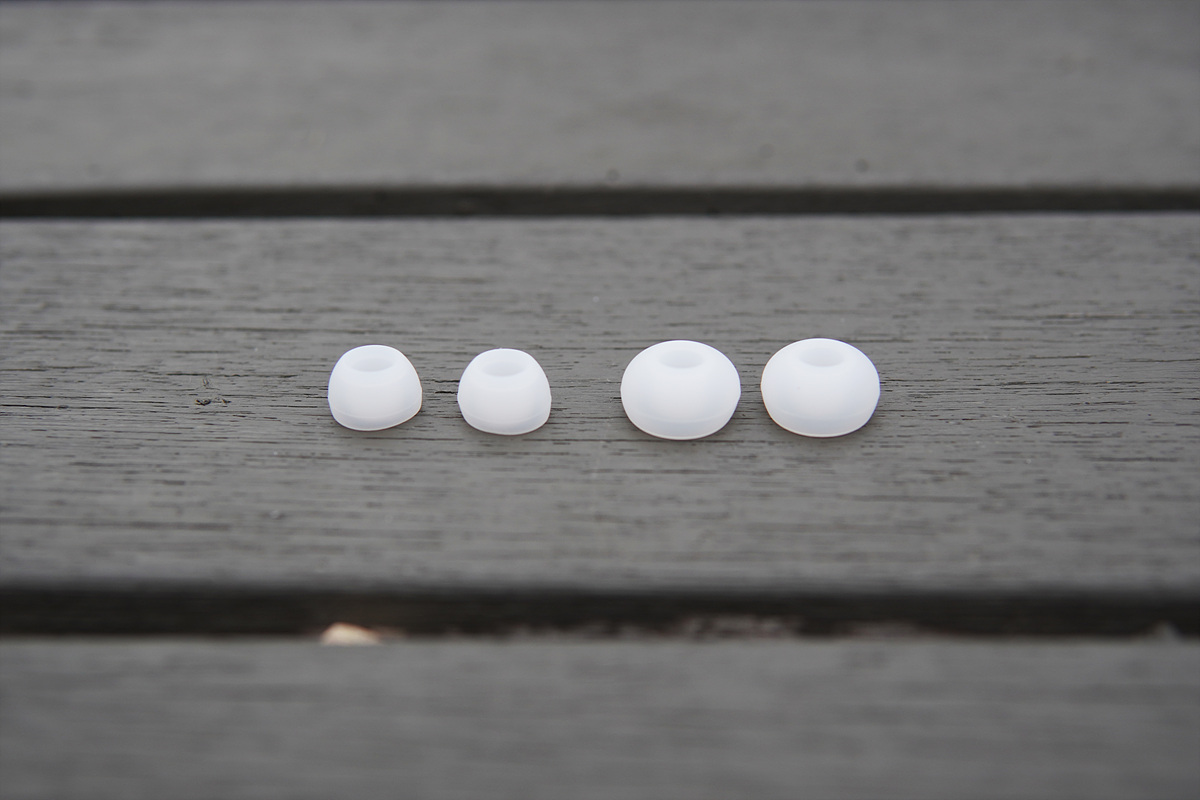 이어팁은 총 세 쌍이 있으며 가장 작은 이어팁은 중/대 크기의 이어팁과는 다른 모양으로 되어있습니다. (이 부분은 아래에서 다시 다루겠습니다.)