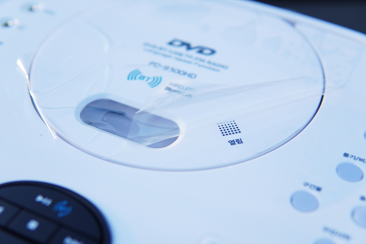 위쪽의 CD/DVD를 넣는 곳과 전면 LCD에는 보호필름이 부착되어 있습니다.