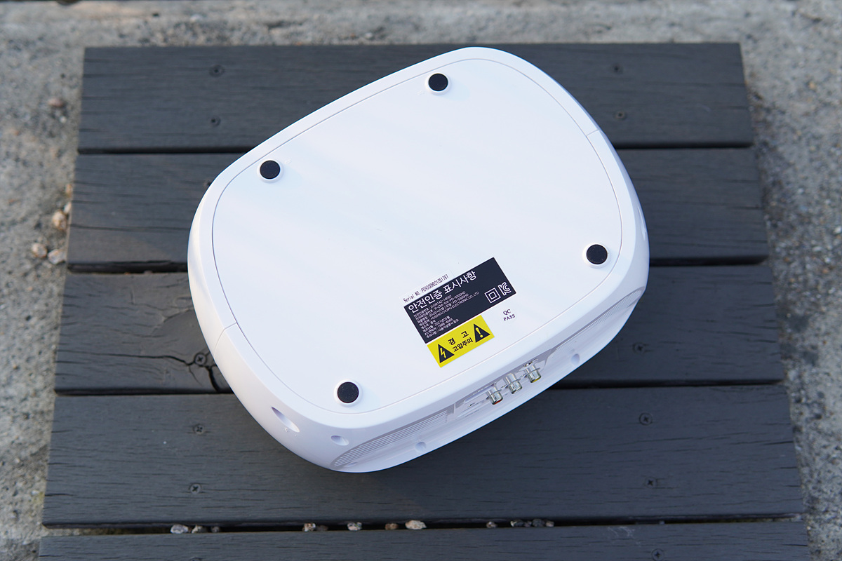 바닥에는 미끄럼 방지용 고무가 있습니다. PD-9300HD는 220V AC 전원만 사용할 수 있습니다. 보통은 C타입의 배터리를 이용해서 외부에서도 사용할 수 있는데 아쉬웠던 부분입니다. 배터리로는 소비전력을 감당할 수 없었던 건지 아니면 여러 가지 기능이 들어가서 배터리 공간을 확보할 수 없었던 건지는 잘 모르겠습니다.