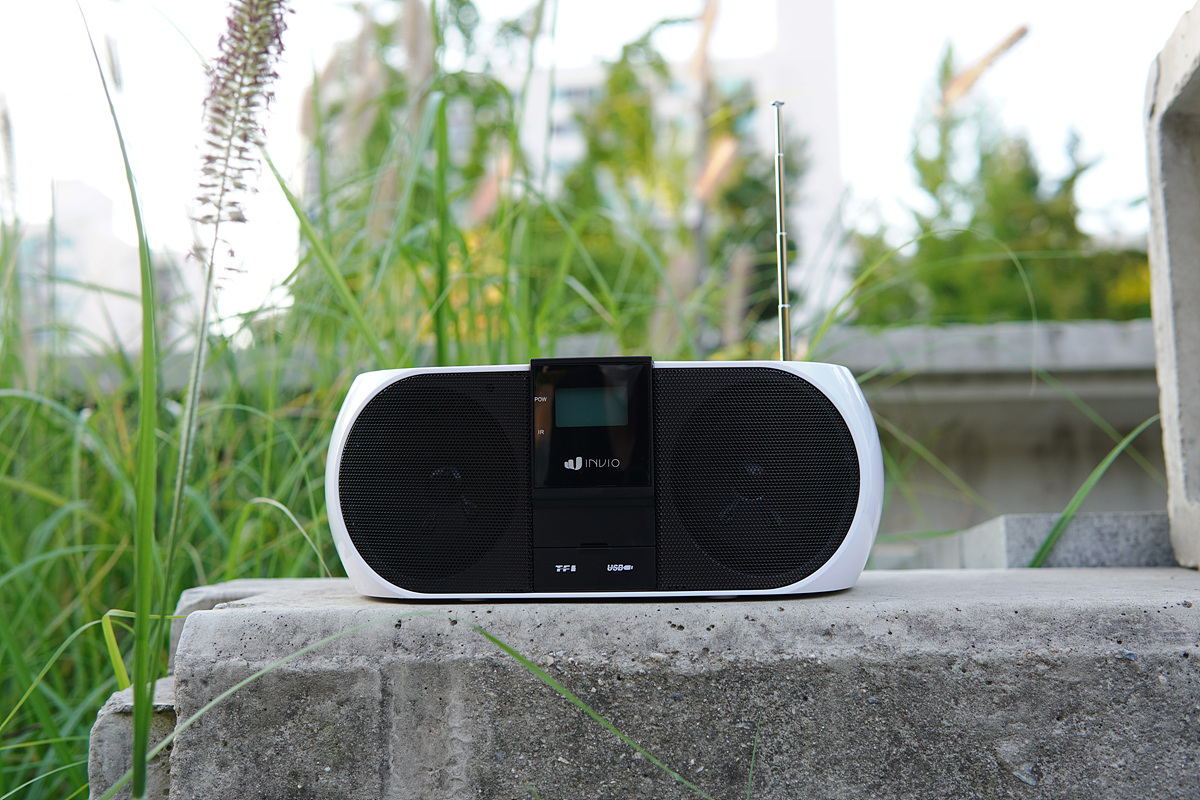 전면에 LCD가 있는 포터블 오디오의 전형적인 디자인입니다. LCD 화면 아래에는 USB, microSD(TF)를 사용할 수 있는 포트가 있으며 3W 출력의 두 개의 스피커는 사용자 쪽으로 장착되어 있습니다. 이런 디자인을 보면 왠지 어깨에 메고 파티를 해야 할 거 같은 느낌적인 느낌이 있습니다. ^^