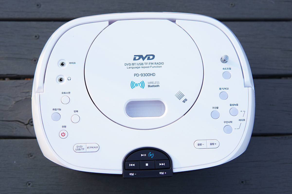 PD-9300HD는 단순히 CD, DVD의 교육용 미디어를 재생하는 것뿐만 아니라 TF, USB 메모리와 블루투스 기능까지 추가되어서 다양한 환경에서 사용할 수 있습니다. 특히 HDMI 포트를 지원해서 소리뿐만이 아닌 영상까지 외부 출력이 가능하다는 점이 상당히 인상적이었습니다. 흘려듣기나 집중 듣기의 경우 소리뿐만 아니라 영상으로도 할 수 있기 때문에 학습용으로도 상당히 좋은 효과를 얻을 수 있습니다. 반복 재생이나 속도 조절과 같은 여러 가지 기능 역시 어학용으로 사용하기 충분한 제품이었습니다.