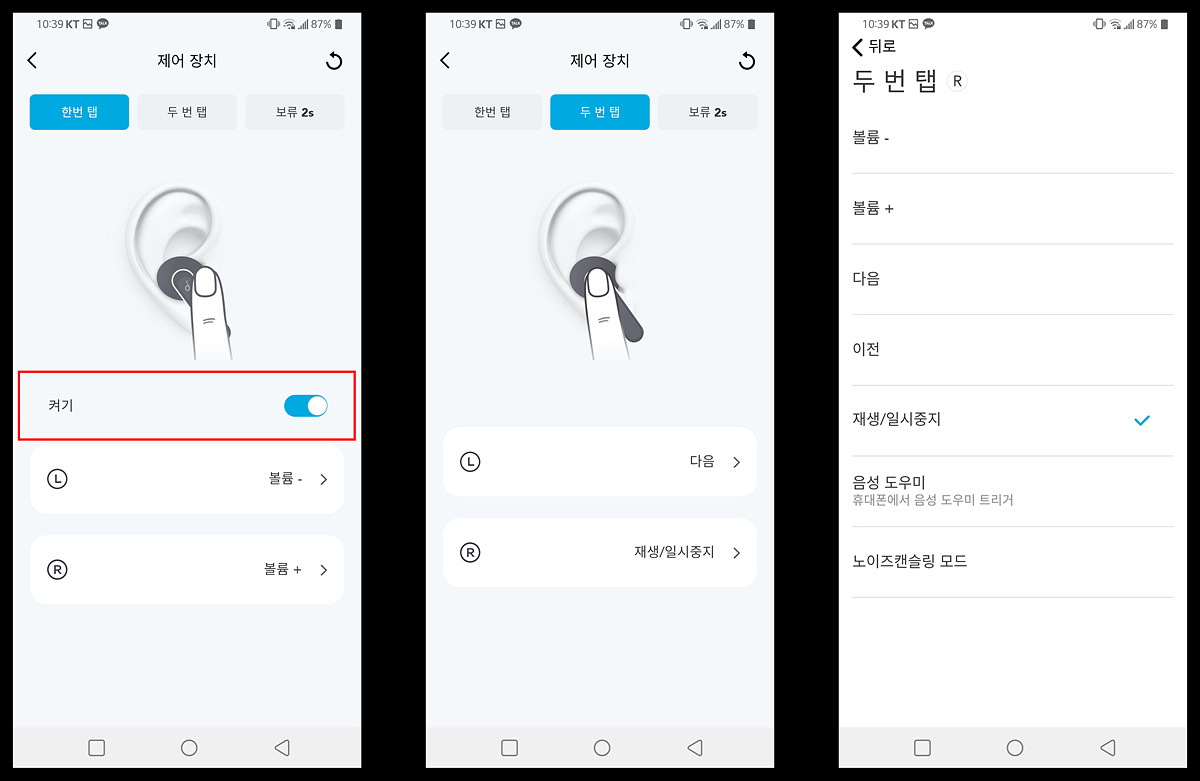 터치 버튼의 조절 역시 한걸음 더 진화했습니다. 이전에는 두 번 터치 기능만 바꿀 수 있었지만 이제는 한번 터치까지 추가할 수 있으며 이 기능을 변경할 수도 있습니다. 이어폰의 기능에 나를 맞추는 게 아니라 이어폰을 나에게 맞출 수 있다는 점이 마음에 들었습니다.
