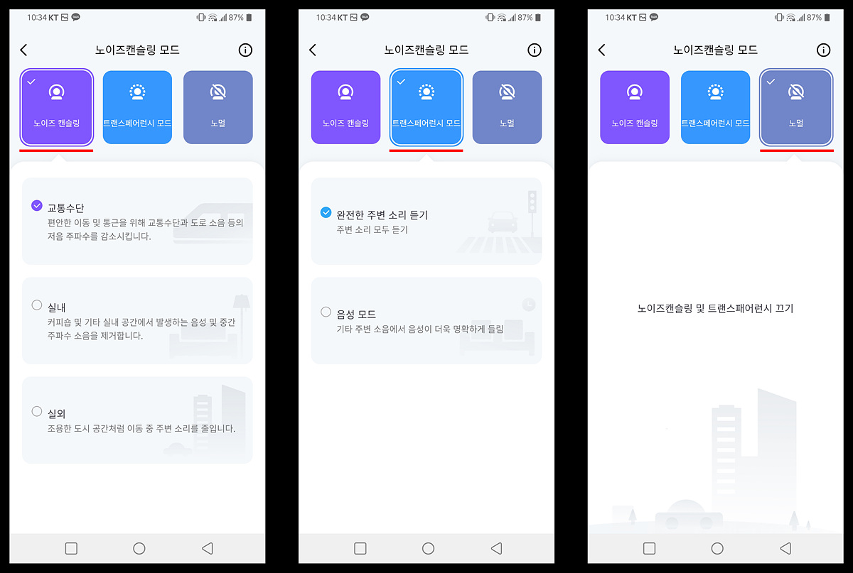 위젯을 지원해서 노이즈 캔슬링을 빠르게 변경할 수도 있습니다.