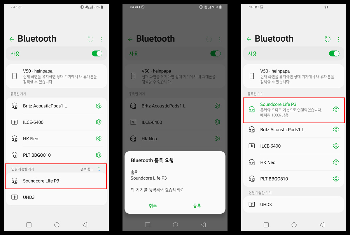 페어링 되어있는 상태에서 제품을 선택하면 자동으로 등록이 됩니다.