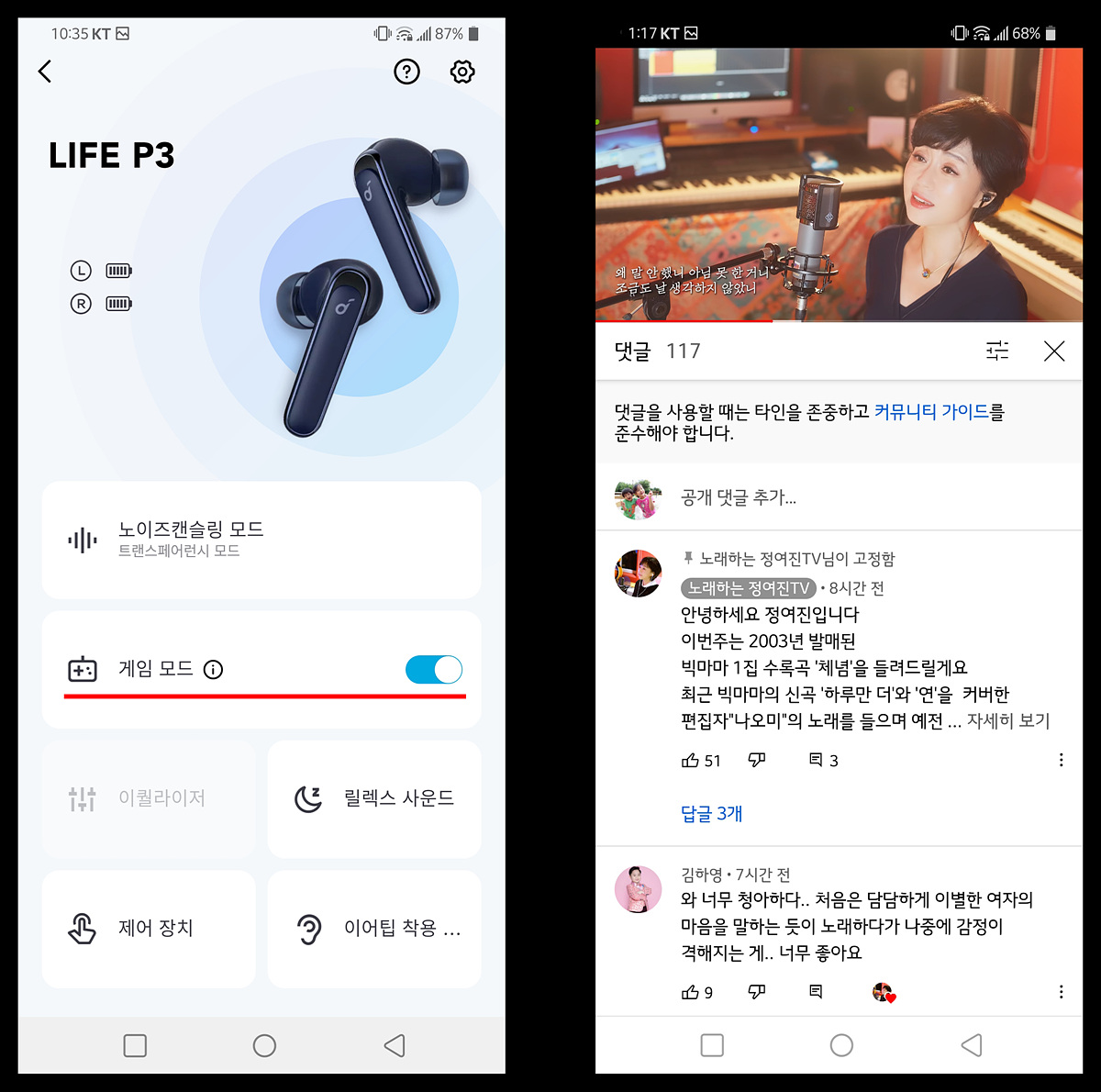 저음의 타격감이 있다면 음악보다는 영화나 게임에서의 활용도가 더 좋지만 라이프 P3 ANC는 이 저음이 다른 대역의 소리를 가리는 마스킹이 거의 없어서 음악을 들을 때도 좋았습니다. 저음이 아예 없다면 소리가 정말 심심해지는데 P3 ANC는 적당한 타격감으로 음악을 듣는 재미를 느끼게 해 주었습니다.