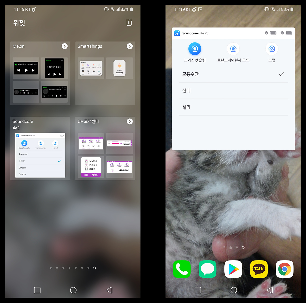 위젯을 지원해서 노이즈 캔슬링을 빠르게 변경할 수도 있습니다.