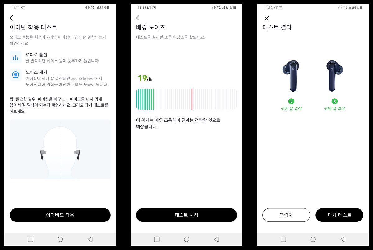 커널형 이어폰(유선, 무선)은 이어 팁의 크기와 착용 상태에 따라서 소리가 많이 달라지게 됩니다. 이런 부분을 확인할 때 유용하게 사용할 있는 기능입니다. 이전 제품인 라이프 닷2를 사용할 때보다 훨씬 많은 기능들이 추가가 되었고 편의성 역시 업그레이가 되었네요.