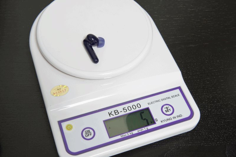 이어 버드는 개당 5g이었고 케이스는 50g으로 측정되었습니다.