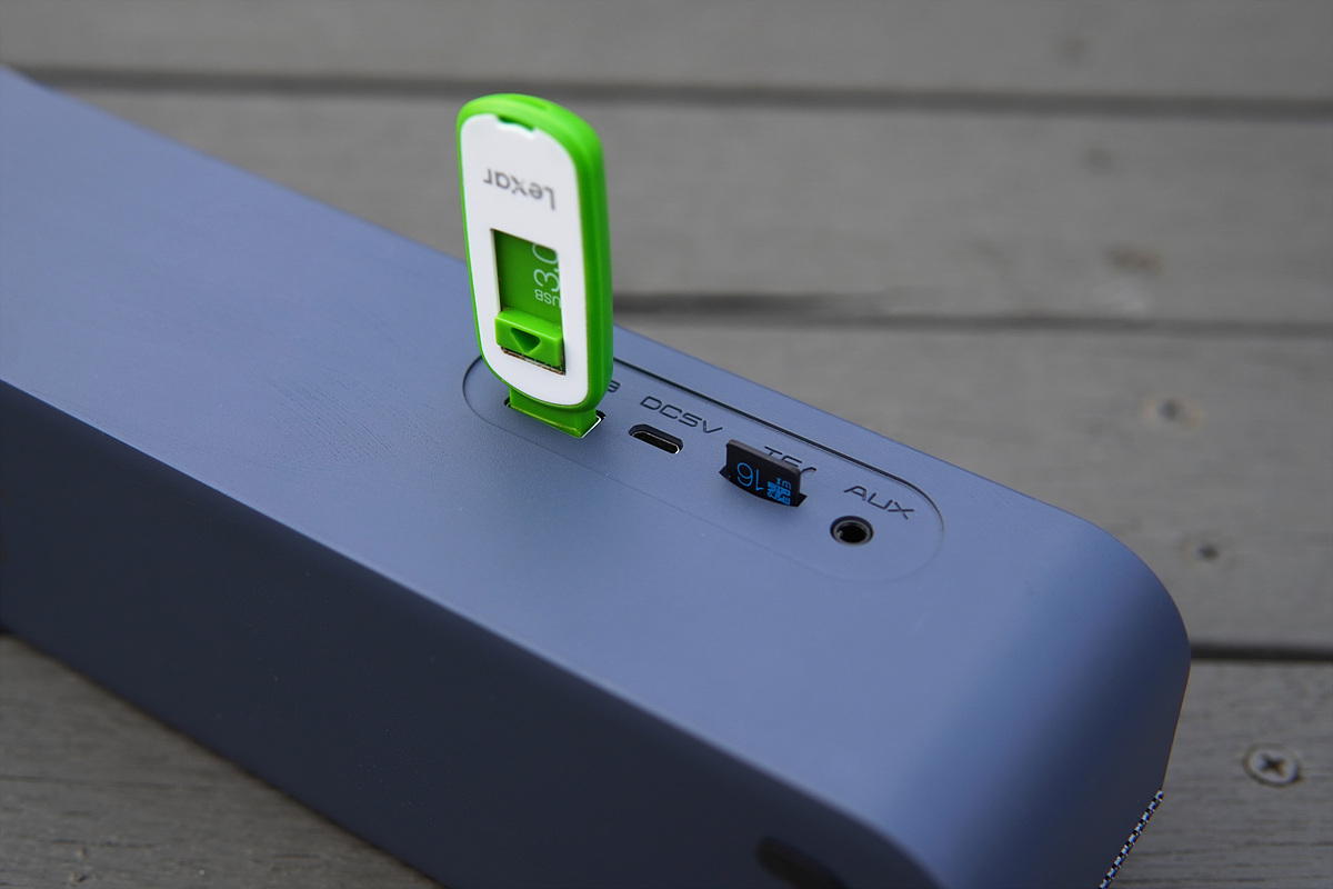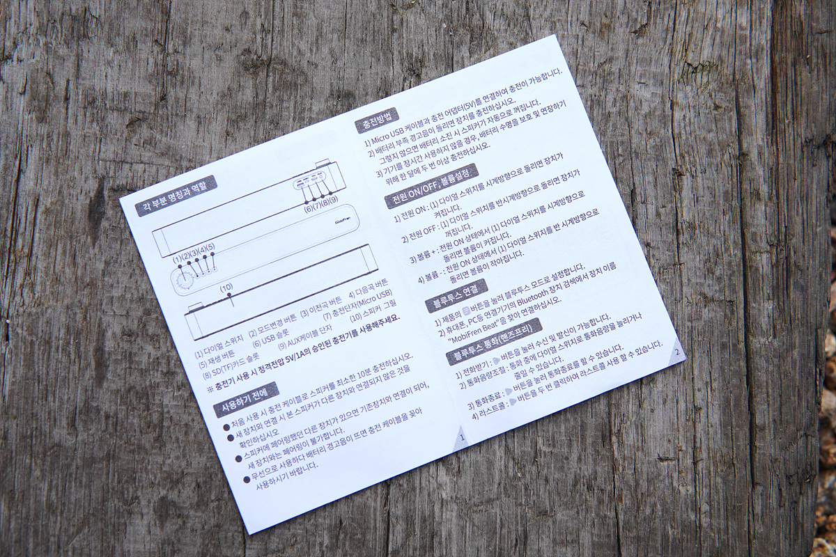 야외에서 촬영을 하다 보니 주변 소음이 좀 있으며 저음이 좀 더 빠지게 들리네요. 실제로는 저음의 타격감이 좀 더 있습니다. 메모리(USB, TF)보다는 블루투스의 톤 밸런스가 더 잘 맞았습니다. 소리의 크기는 야외에서 사용하더라도 12시 방향인 50% 이상 올릴 필요가 없을 정도로 충분했습니다. 그 이상 올리면 민폐가 될 수도 있습니다.