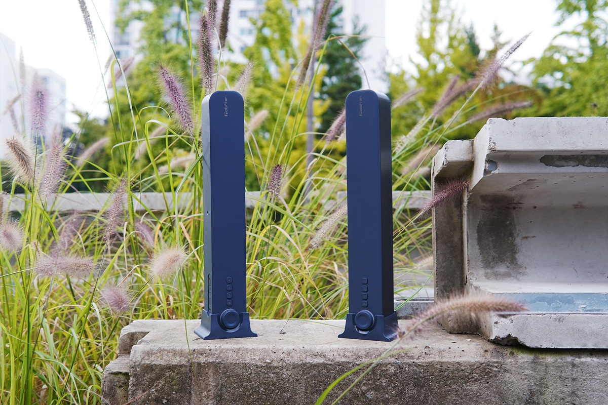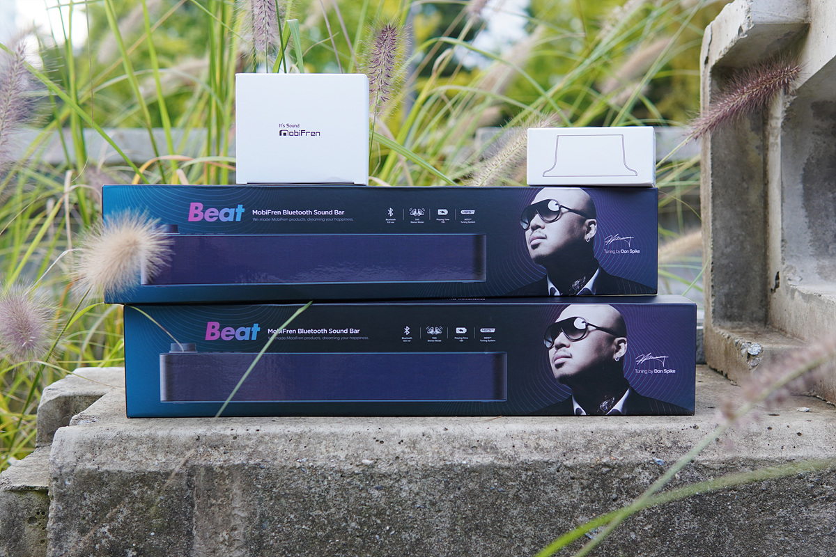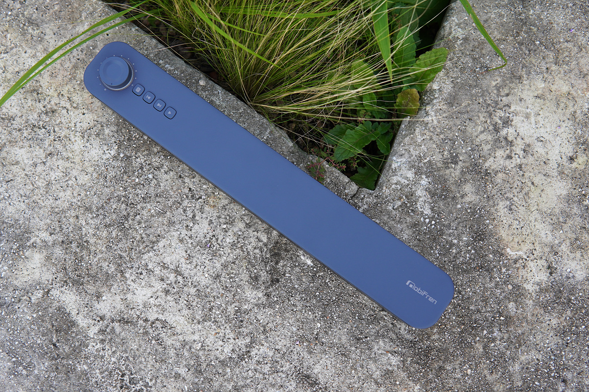 이번에 소개하는 모비프렌의 비트(beat) 제품 역시 이런 사운드바 형태의 블루투스 스피커지만 조금은 특별한 기능과 액세서리를 가지고 있습니다. 블루투스 스피커들은 대부분 단독(한 개)으로 사용하지만 이 제품은 두 개로 연결해서 2채널의 스테레오로 사용할 수 있으며 전용 받침대로 가로가 아닌 세로 형태로 세워서 사용할 수 있습니다.
