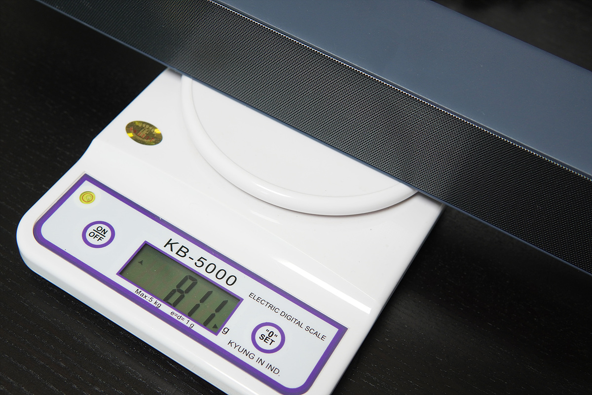 스피커의 무게는 811g으로 측정되었습니다. 가지고 다니면서 음악을 듣기에는 조금 무리지만 집이나 사무실과 같은 곳에서 사용하기에 적당한 크기이고 캠핑이나 가까운 곳으로 소풍 갈 때도 사용할 수 있습니다.
