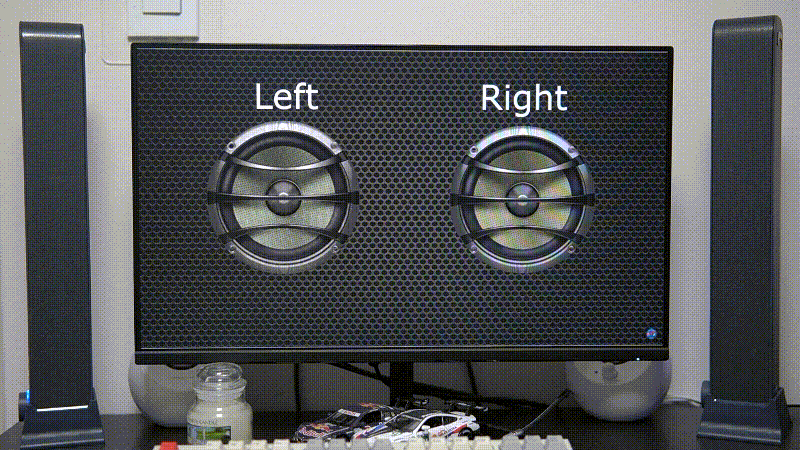 모니터 양쪽으로 사운드바를 놓게 되면 좌우 스테레오를 더욱 확실하게 느낄 수 있습니다. 볼륨 조절 역시 좌우 구분 없이 어떤 쪽에서 조절하더라도 두 개가 같이 연동(Sync)이 됩니다.