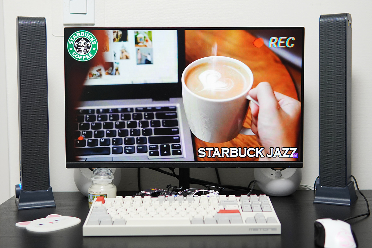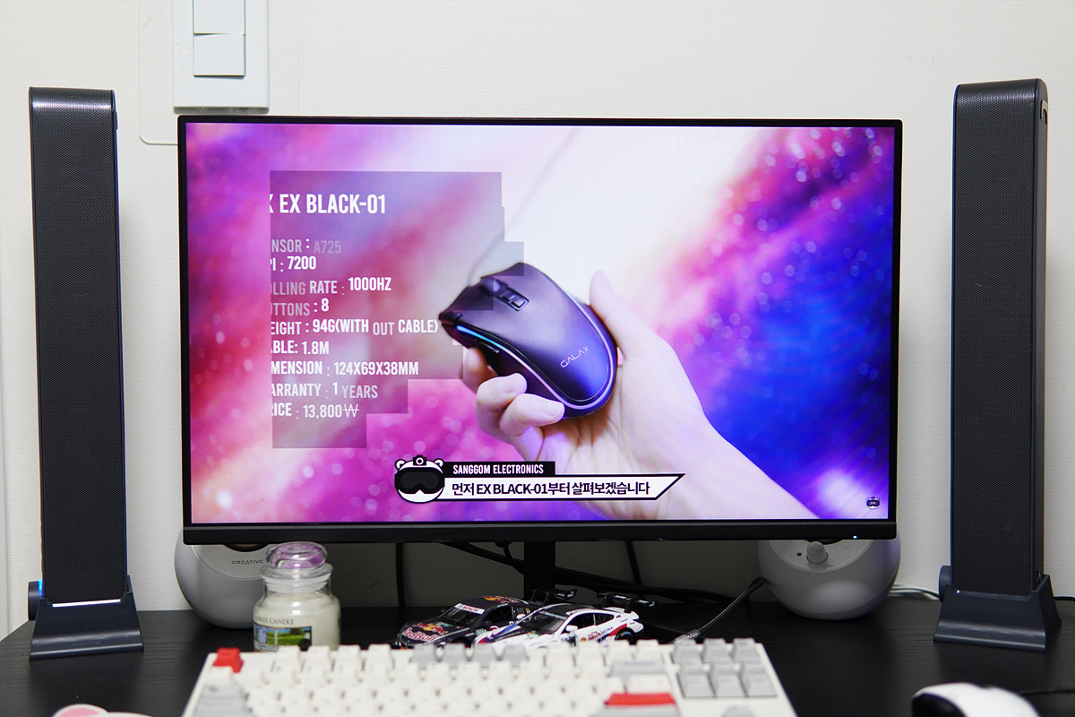 게임보다는 역시 음악을 들을 때 비트의 장점을 더욱 확실하게 느낄 수 있었습니다. 전 사진 촬영을 위해서 모니터 가까이 두었지만 실제 사용할 때는 두 기기의 거리를 좀 더 띄운 채로 사용하는 게 좋습니다.