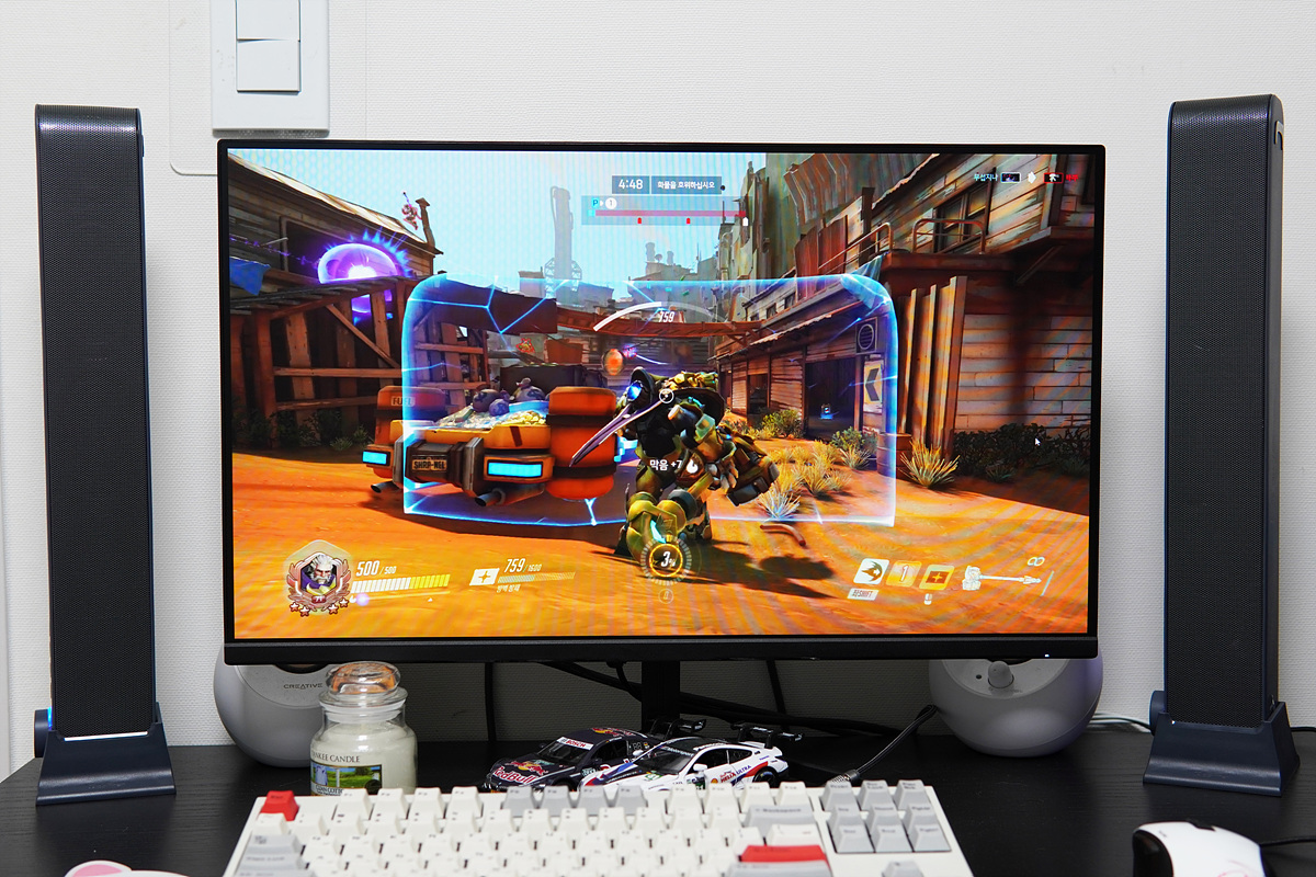 2채널 방식의 스피커라서 게임도 테스트를 해봤지만 역시나 블루투스의 딜레이가 느껴졌습니다. 무선 딜레이는 반박자에서 한 박 자정도까지 느껴져서 fps 게임은 무리였습니다.
