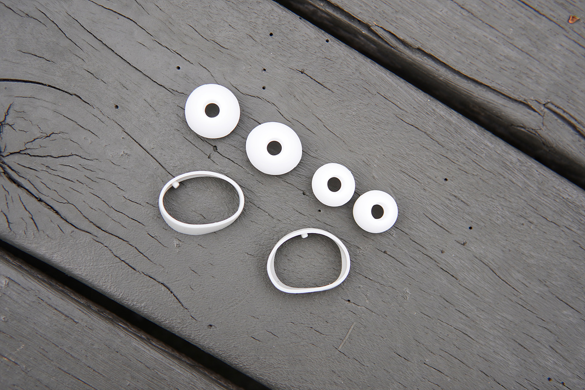이어 버드와 이어 윙 모두 좌우 구분이 확실하게 표시되어 있으며 이압을 줄여주는 홀(hole)이 있습니다.