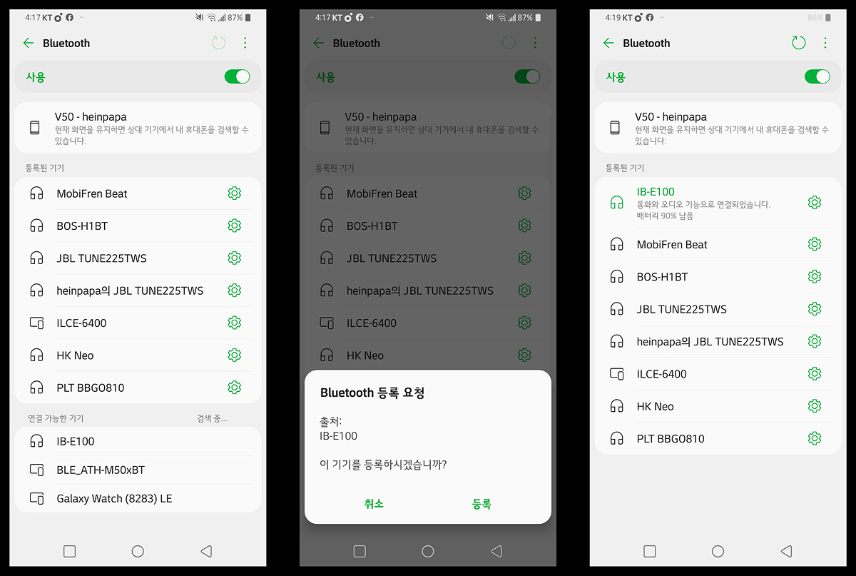 아이리버 IB-E100 이어폰의 가격은 7만원 정도로 블루투스 이어폰에서 가장 경쟁이 치열한 가격대의 제품입니다. 이런 부분 때문인지 사운드의 성향은 가장 대중적이라고 할 수 있는 V자 형태를 가지고 있습니다. 저음의 타격감이나 볼륨이 꽤 많은 탓에 이런 소리를 좋아하는 분들에게는 적당한 가격이 될 거라 생각하지만  반대로 밸런스를 중요하게 생각하는 분들이라면 이런 부분이 오히려 단점이 될 수도 있습니다.