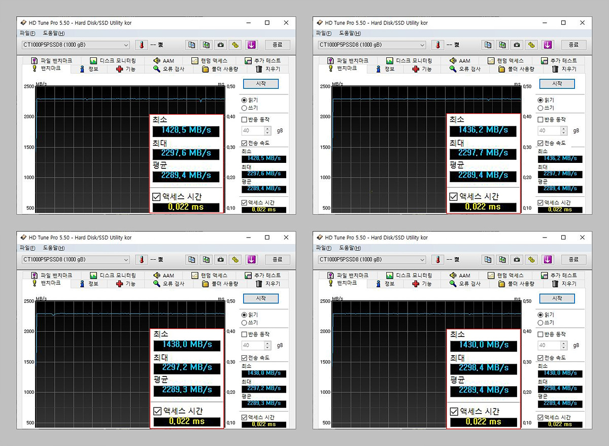 AS SSD를 네 번 측정한 평균값입니다.